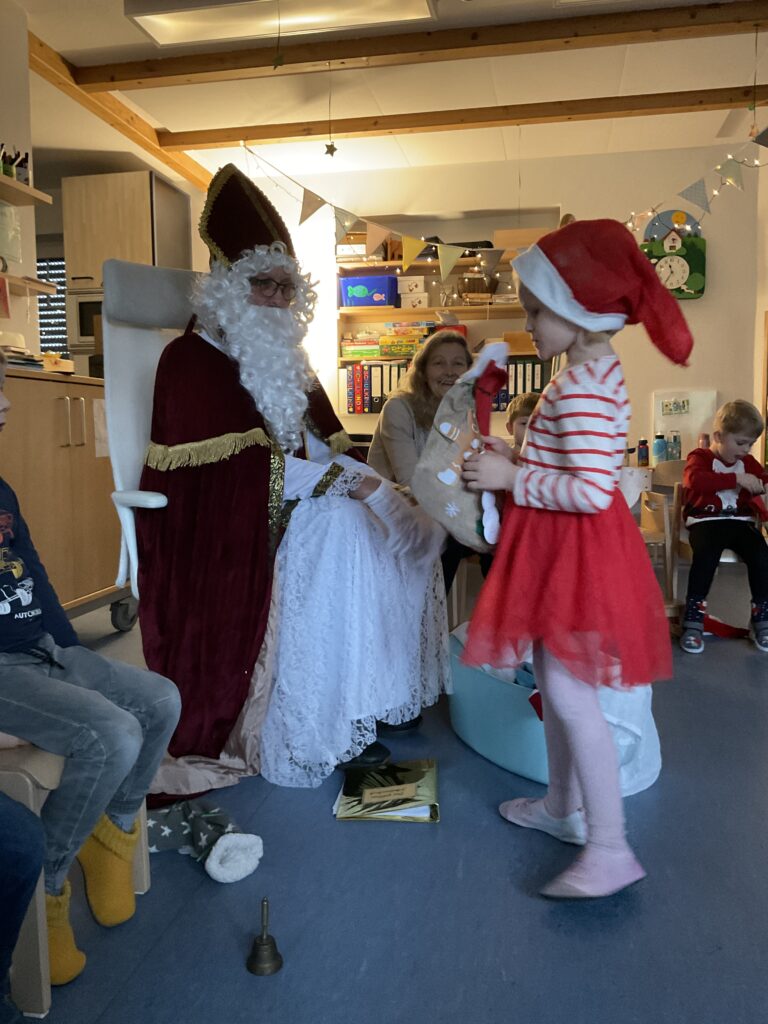 Im Kindergarten lag an diesem Morgen eine gespannte Stimmung in der Luft. Schon in den Tagen zuvor hatten die Kinder ihre großen Socken (gerne die vom Papa) sorgfältig aufgehängt, voller Vorfreude darauf, dass der Nikolaus sie irgendwann finden würde. Doch als sie den Tag zuvor den Gruppenraum betraten, waren die Socken plötzlich verschwunden! Große Augen, leises Raunen – hatte etwa wirklich der Nikolaus sie geholt?