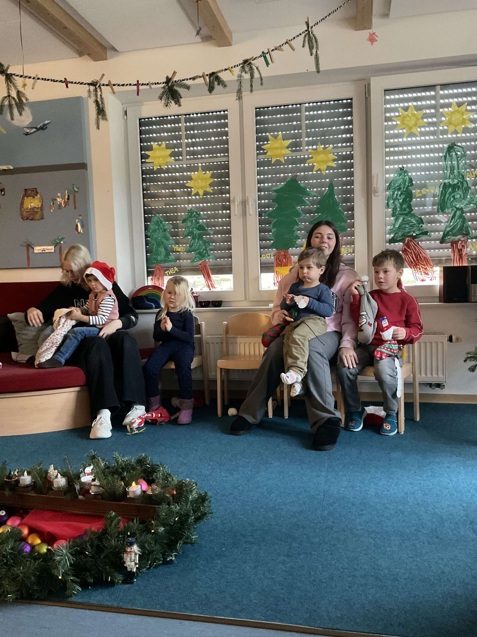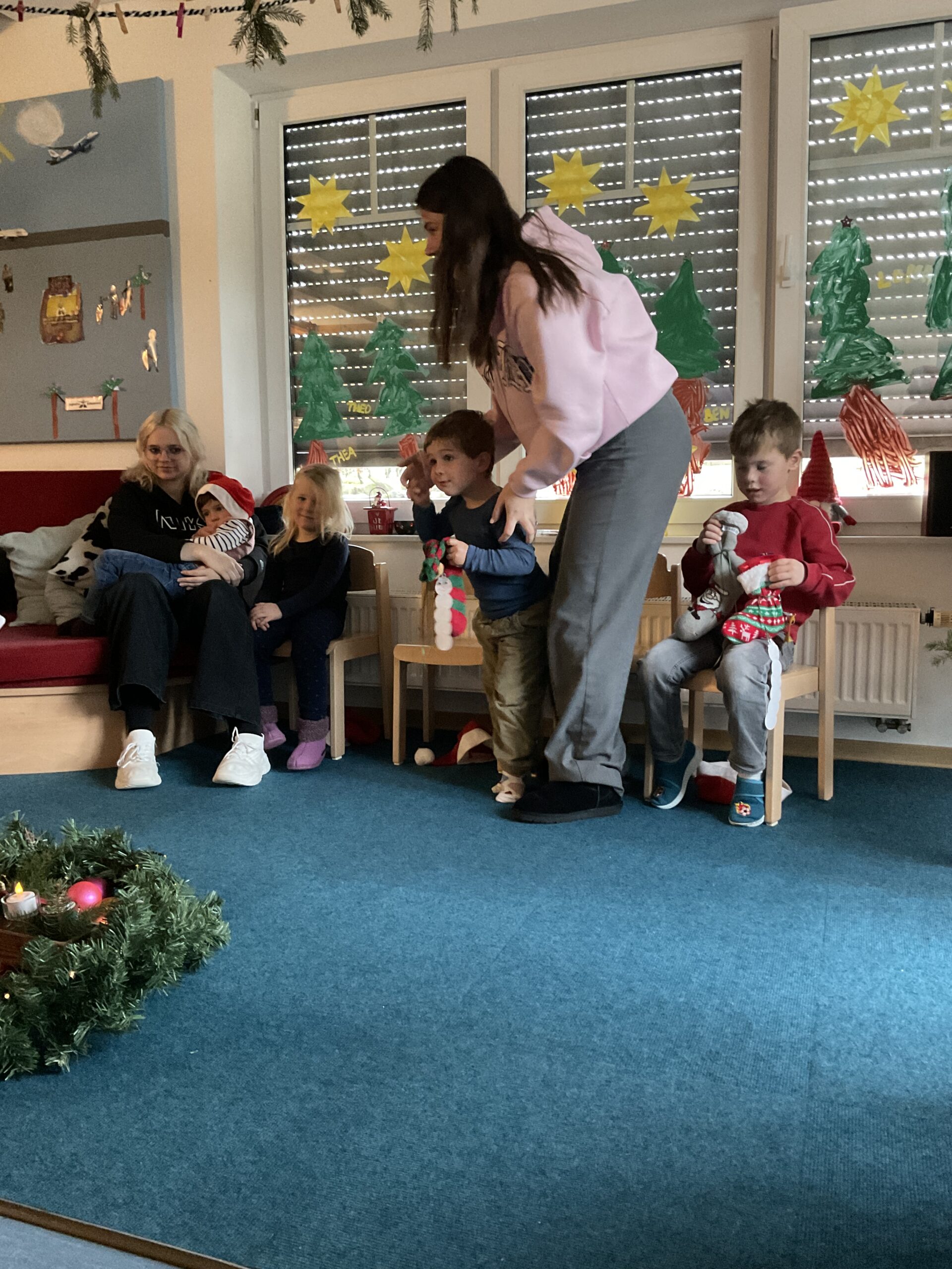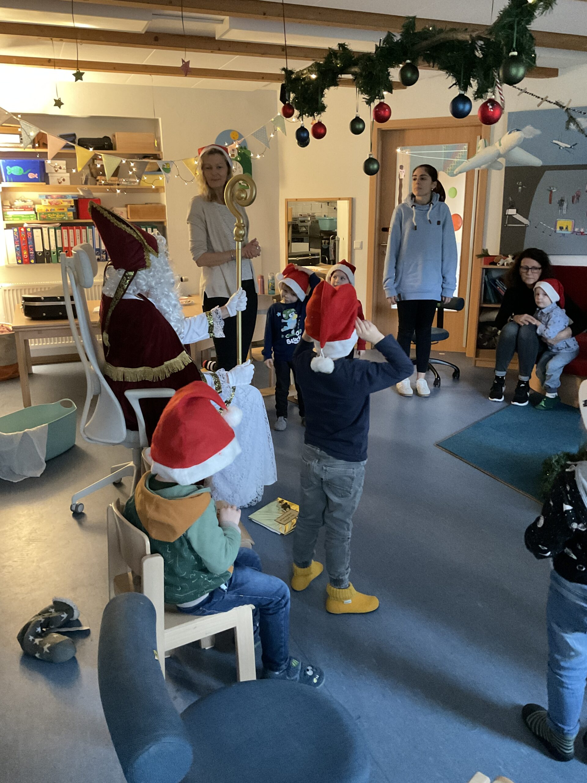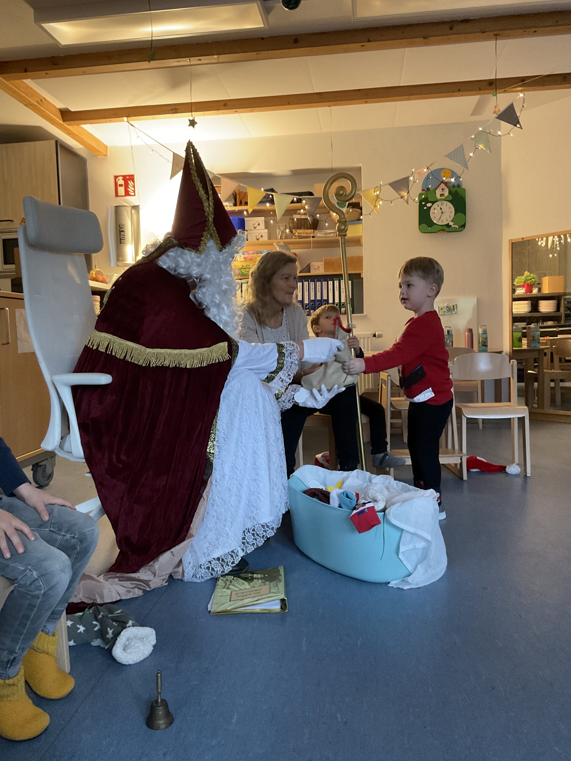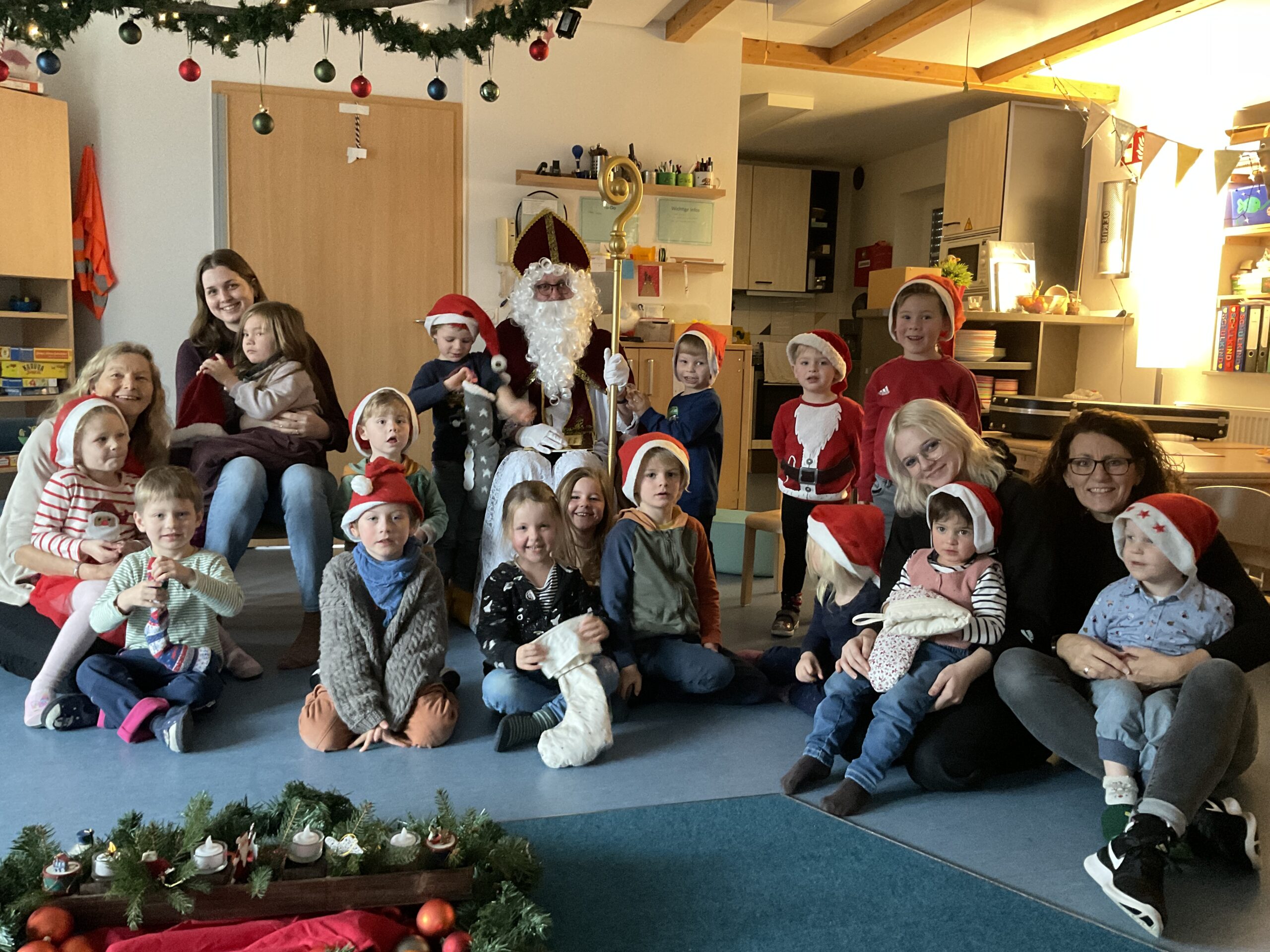 Im Kindergarten lag an diesem Morgen eine gespannte Stimmung in der Luft. Schon in den Tagen zuvor hatten die Kinder ihre großen Socken (gerne die vom Papa) sorgfältig aufgehängt, voller Vorfreude darauf, dass der Nikolaus sie irgendwann finden würde. Doch als sie den Tag zuvor den Gruppenraum betraten, waren die Socken plötzlich verschwunden! Große Augen, leises Raunen – hatte etwa wirklich der Nikolaus sie geholt?